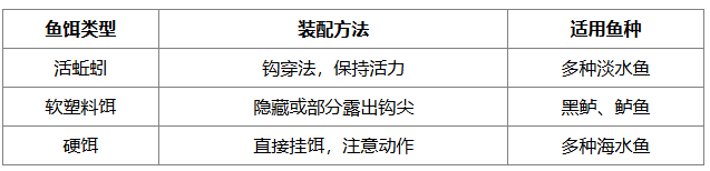 表格:不同鱼饵的装配方法