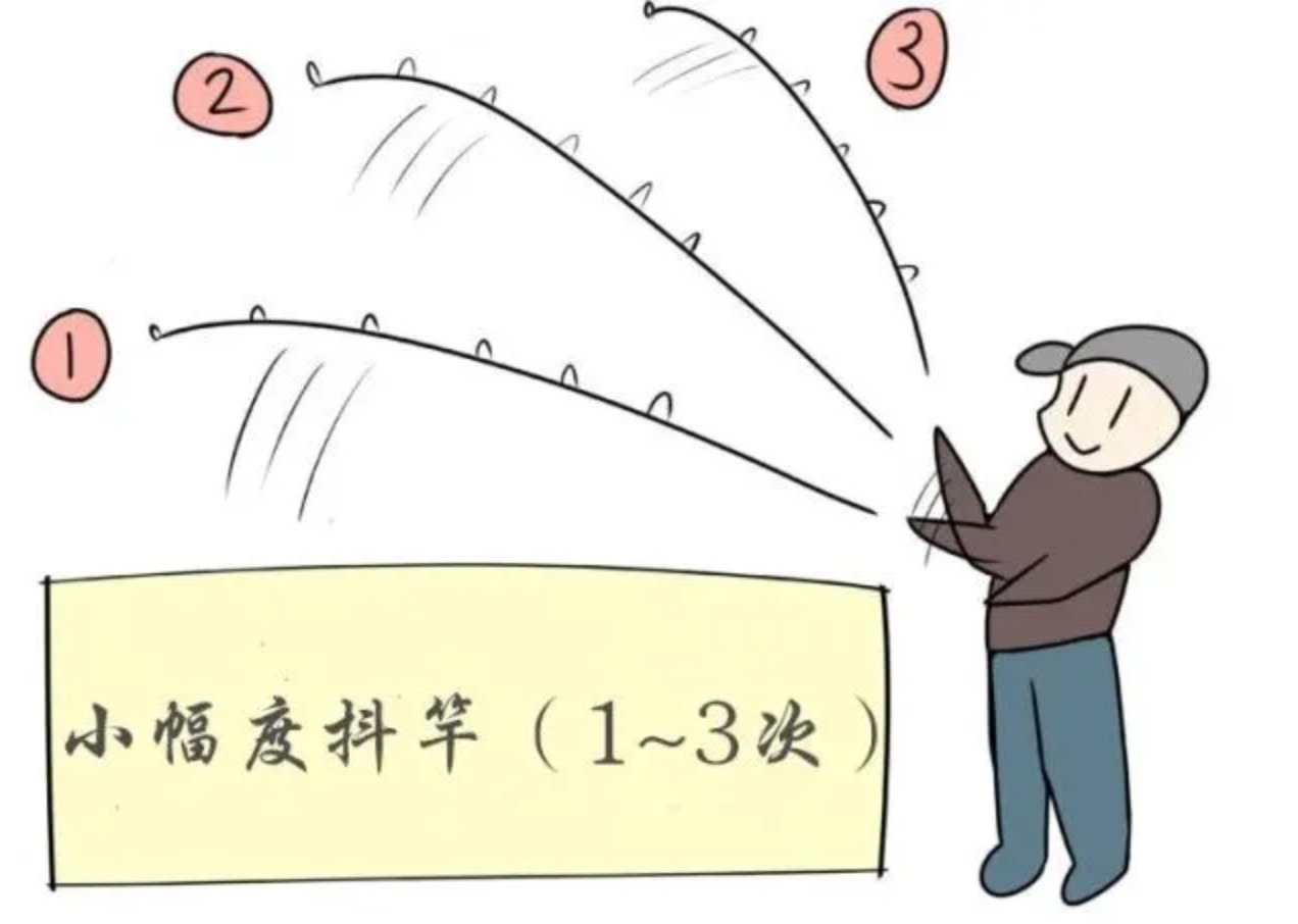 上浮&下沉动作是操作自由钓组必不可少的技巧之一。首先,小幅度向上抖竿1~3次,让自由钓组上浮,之后突然暂停等待铅坠到达水底,软饵紧随其后缓慢下沉。在操作自由钓组的时候,建议大家先从上浮&下沉动作开始,整套操作会非常顺畅。