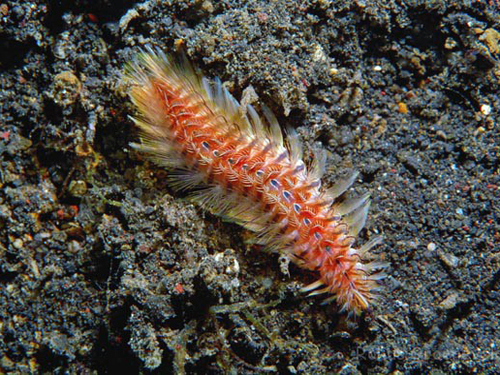 红鳃泥虫(red-gilled mud worm)是这个品种中比较大的,大约能长到10厘米或更长,通常生活在沙地,潮汐滩涂,在那里能够建立覆盖着泥土的管子。伸展出头部,用触须捕捉经过的猎物。