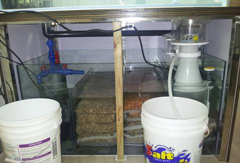 侧过滤、背过滤和底过滤均可以,顶过滤、外置过滤盒和ATS尽量不要用,对于纯养鱼来说,它们太麻烦而且效果(稳定性和及时性)不佳。混养缸底过滤较好,纯养小丑则背过滤较方便。水泵选择每小时流量为缸中水体的5-10倍即可,底过滤要选择大点的水泵。小缸用大点的水泵还可以省去造流。过滤材料为玻璃环和碎活石,每百升水配5-10升即可。过滤棉或过滤袋可有可无。