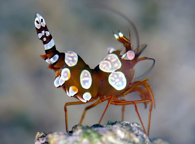 小丑虾被誉为地球上最美丽的生物之一,一般有蓝色、紫色、褐色的体色斑点花纹。两个大大的前螯非常威武,但是并没有什么卵用。虽然他们如此美丽,但是他们的饲养难度和成本却比较高。原因就是他们的食物只有一种,那就是海星。